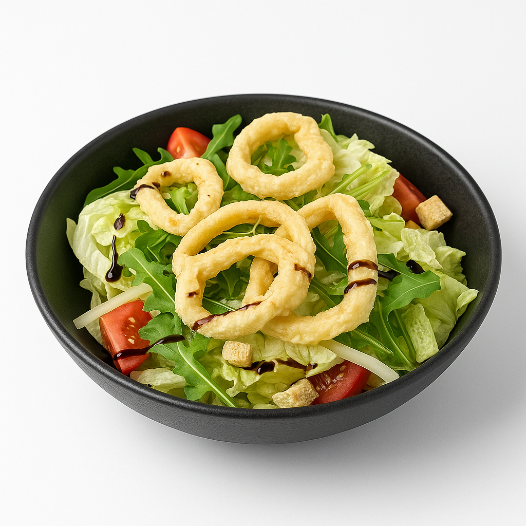 айсберг,чери домати,пармезан,крутони,Цезар дресинг,калмари